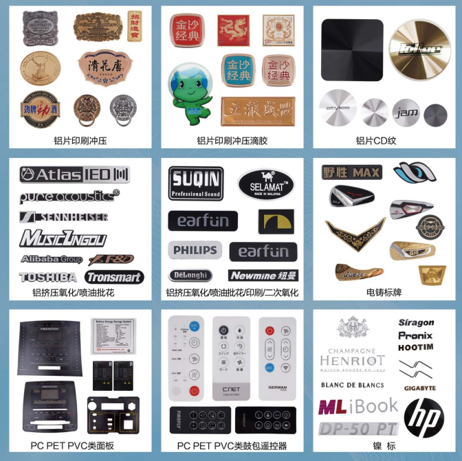 Main products: Nameplate/Nameplate /CD pattern/label/nickel mark/glue drop /PC panel PET/ lens/badge/tag